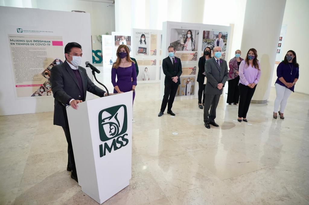 Al inaugurar la exposición “Mujeres que IMSSpiran en tiempos de COVID-19” en el vestíbulo del edificio central del Instituto, Zoé Robledo destacó que además de la representación paritaria en los estados, en el Seguro Social son mujeres quienes encabezan cuatro de las nueve direcciones normativas: Planeación Estratégica e Institucional, Incorporación y Recaudación, Innovación y Desarrollo Tecnológico y Prestaciones Médicas. Agregó que al inicio de su gestión en el IMSS sólo tres mujeres estaban a cargo de una de las 25 Unidades Médicas de Alta Especialidad (UMAE), y actualmente hay nueve en estos cargos de dirección “y con grandes resultados en todos los casos”.