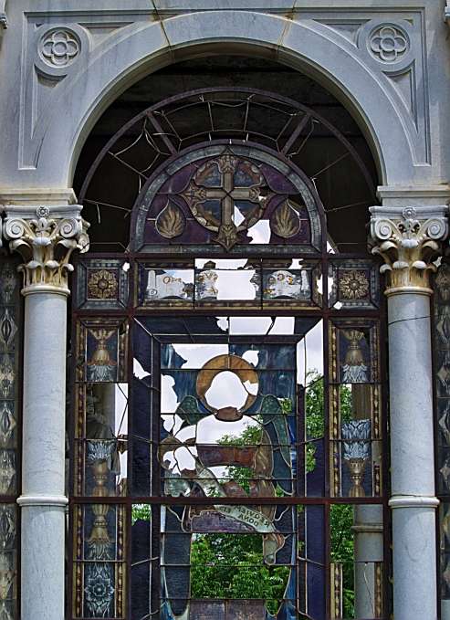 Las esculturas suelen ser mutiladas; brazos, manos y cabeza son los elementos que generalmente se amputan. Velas, escombros y gatos muertos también se visualizan cerca de las tumbas.