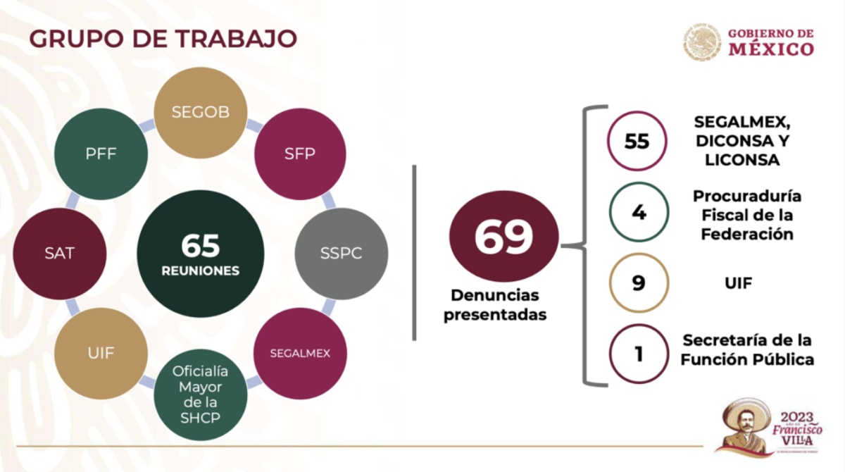 De acuerdo con Mexicanos contra la Corrupción y la Impunidad (MCCI), “durante la mañanera del 29 de junio de 2023, el entonces procurador fiscal, Félix Arturo Medina Padilla, dio a conocer que por instrucción presidencial se creó un grupo de trabajo intersecretarial para investigar el desfalco en Segalmex. Sin embargo, los resultados de ese grupo son un secreto de Estado, pues la información que ha generado fue clasificada como reservada por cinco años”.