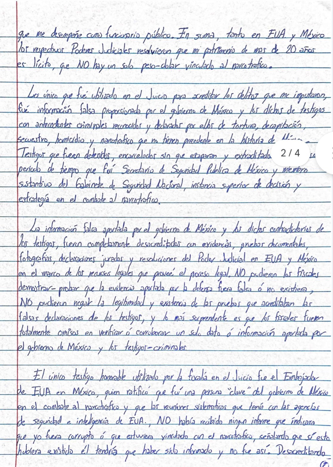 Lo anterior se combina con la carta que Genaro García Luna dio a conocer por medio de su abogado y en la que hace fuertes señalamientos en contra del presidente López Obrador, misma que puede leer a continuación: