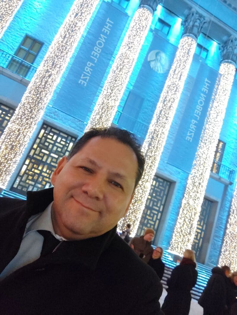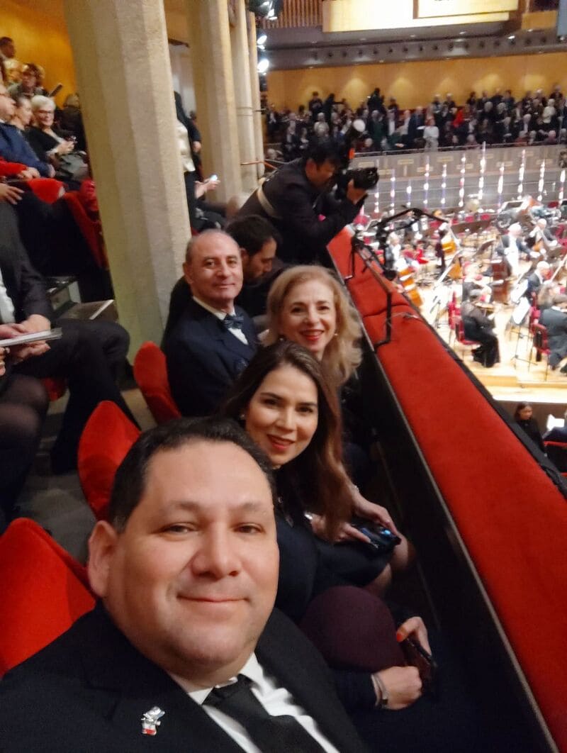 - Fotografías que Perea Santiesteban se tomó en la ceremonia de la entrega del Premio Nobel.
